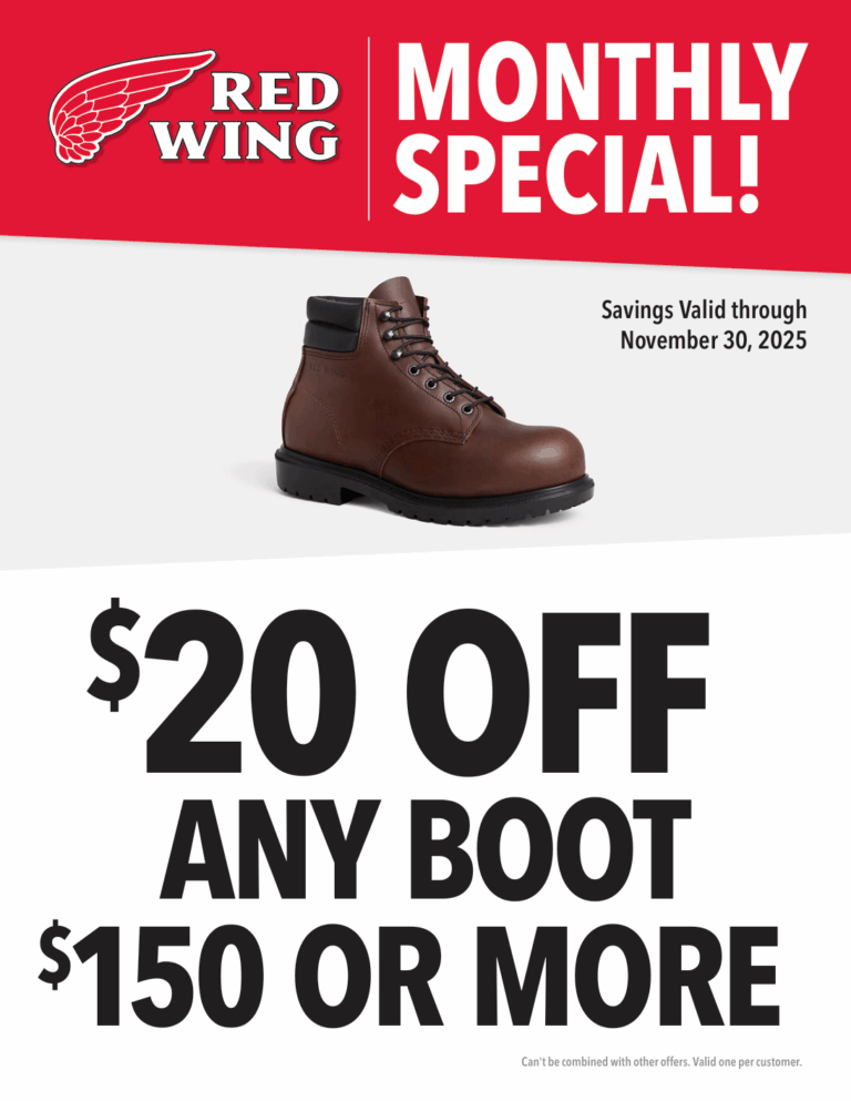 Red Wing Hampton’s November offer is here! Get $20 OFF any boot $150 or more!